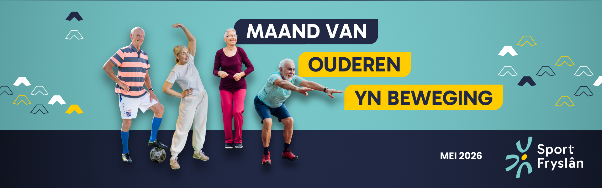 In mei vieren we de Maand van Ouderen yn Beweging. Een maand lang inspiratie, ontmoeting en vooral… heel veel plezier in bewegen. Samen met sportclubs, organisaties en gemeenten zetten we senioren in de spo(r)tlight! Of je nu al beweegt of gewoon nieuwsgierig bent: kom meedoen, probeer iets nieuws en beleef hoe leuk en gezellig bewegen kan zijn!
